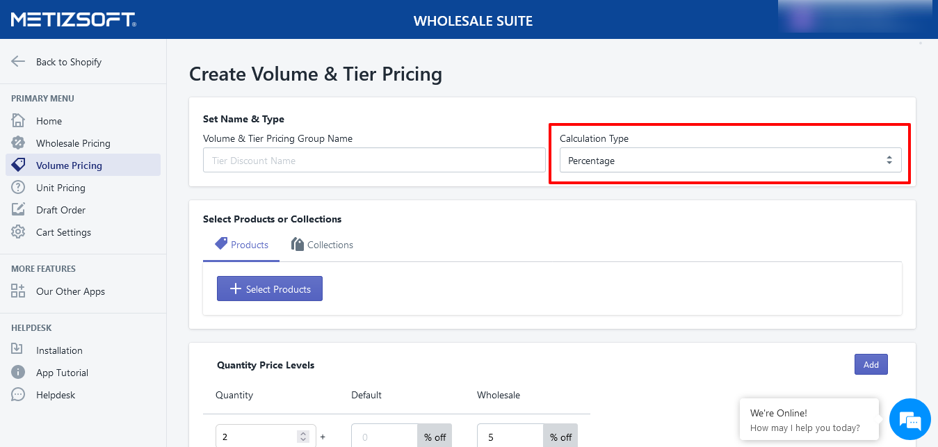 - Then enter the "Volume & Tier Pricing Group Name", select "Calculation Type".