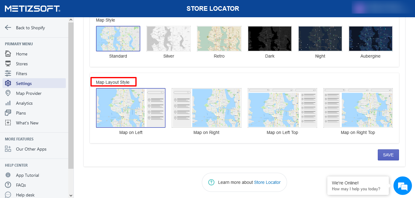 These features are available only with the Business Plan. Please upgrade your plan to access them. Go to App Settings. Click on Map Settings. Under Map Settings, click on Map Style.