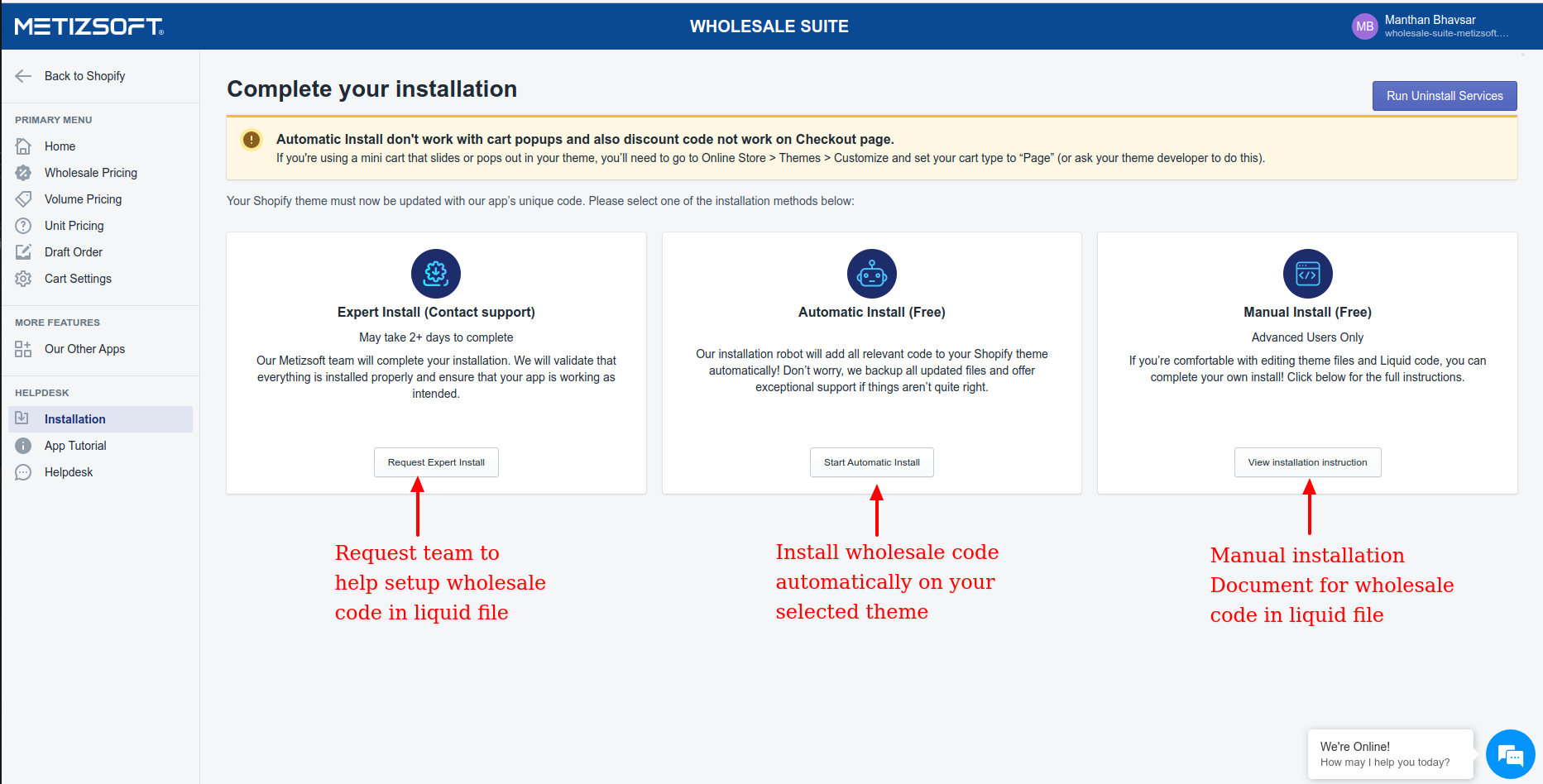 2. Expert Install - Have one of Metizsoft's experts add the code to your store manually.