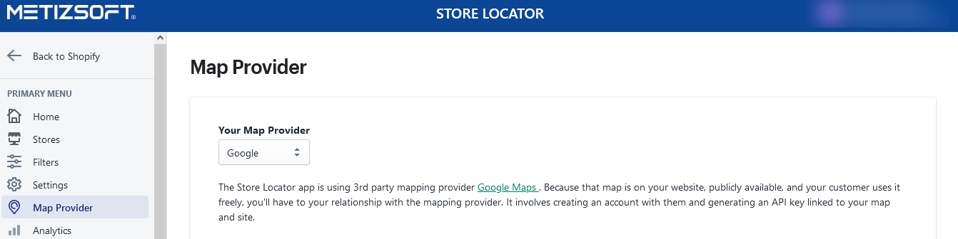 - Scroll to the bottom of the Map Provider section to find your Google Maps API key.