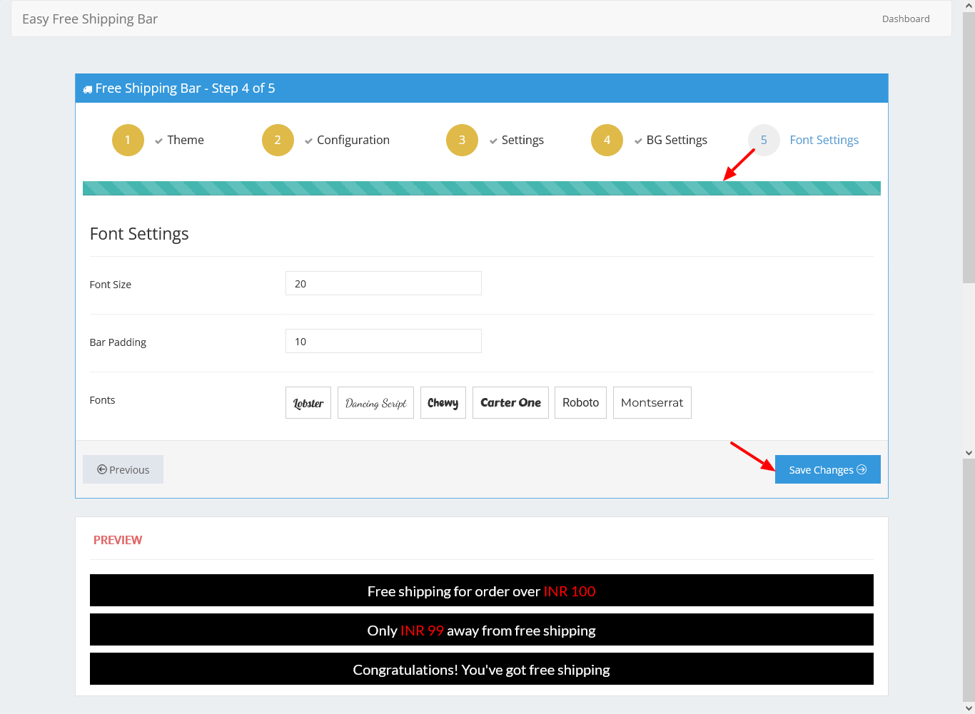 In Font Settings, set Font color, Fonts for text, bar padding, then click on the "Save Changes." button.