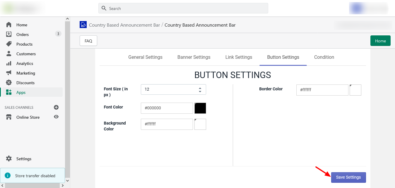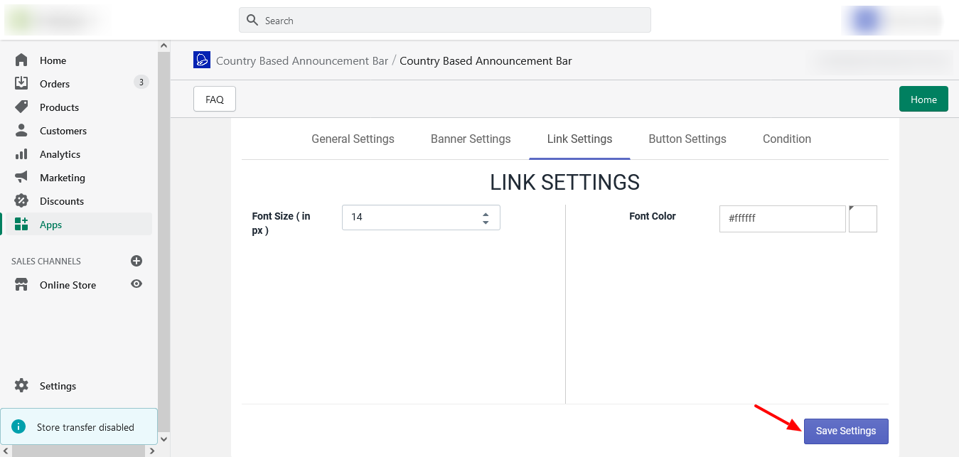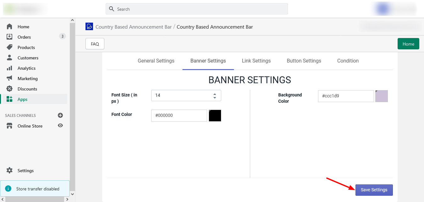 In the Banner setting, set banner Color, Font size, and click on the "Save Setting" button.
